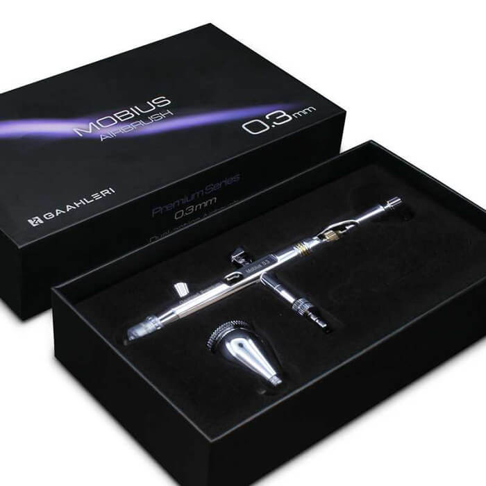 A professzionális minőségű anyagokból készült GHPM-Mobius állandó és szabályozott festékáramlást biztosít, még akrilfestékek, zománcok vagy jól hígított lakkok esetén is. Ergonomikus kialakítása kényelmes használatot biztosít hosszú munkamenetek során, míg az érzékeny ravasz sima és progresszív reakciót biztosít a levegő és a festékáramlás teljes kontrollja érdekében.